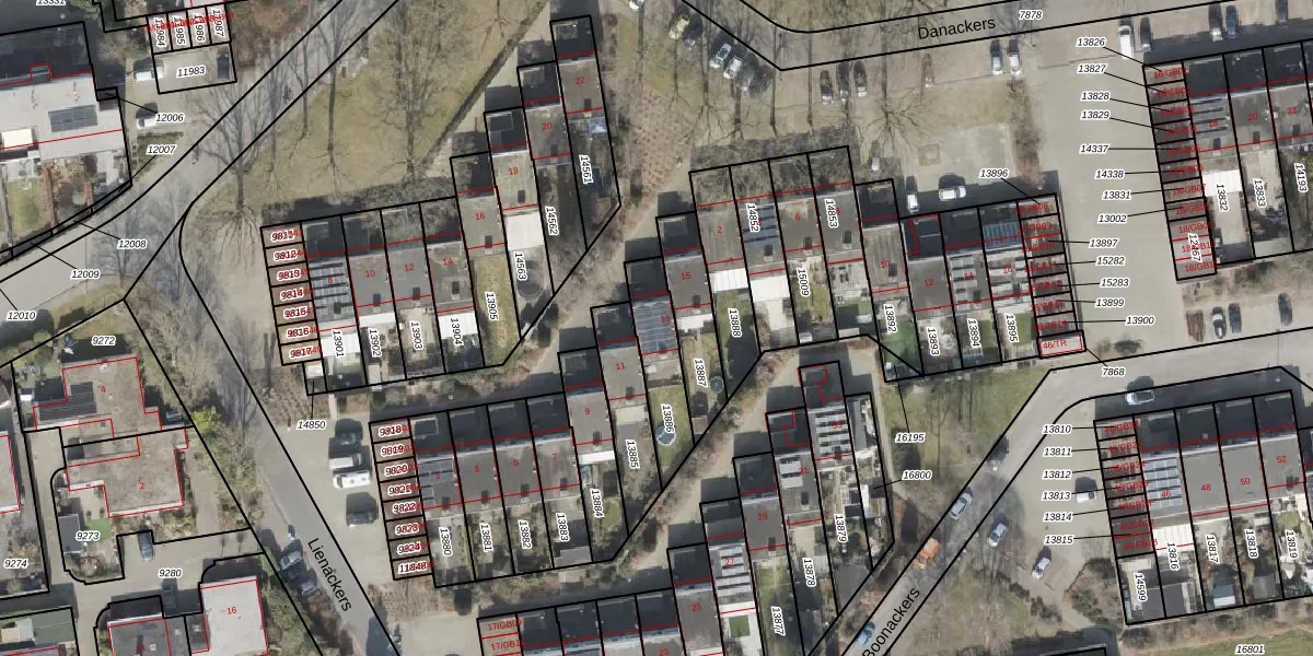 Het perceel waarop Lienackers 13 staat heeft een oppervlakte van 196 m². Dit is een middelgroot perceel. De perceeloppervlakte wordt geregistreerd door het Kadaster. Gedetailleerde informatie over de maten van dit perceel kunt u vinden in het rapport Kadastrale kaart met maatvoering van Lienackers 13.