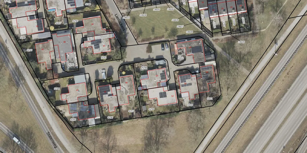 Het perceel waarop Lienackers 50 staat heeft een oppervlakte van 393 m². Dit is een groot perceel. De perceeloppervlakte wordt geregistreerd door het Kadaster. Gedetailleerde informatie over de maten van dit perceel kunt u vinden in het rapport Kadastrale kaart met maatvoering van Lienackers 50.
