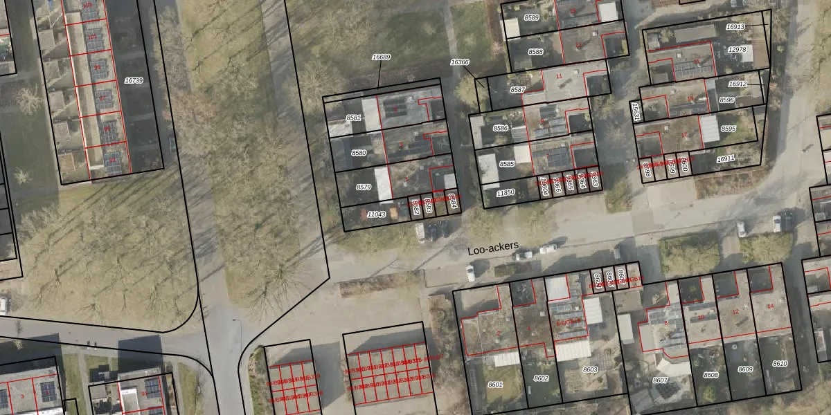 Loo-ackers 1-GB01 is gelegen op kadastraal perceel EMN00F8582. Deze kadastrale aanduiding is uniek en wordt gebruikt door het Kadaster om eigendomsrechten en andere zakelijke rechten vast te leggen. Het perceel maakt onderdeel uit van de kadastrale gemeente Emmen.