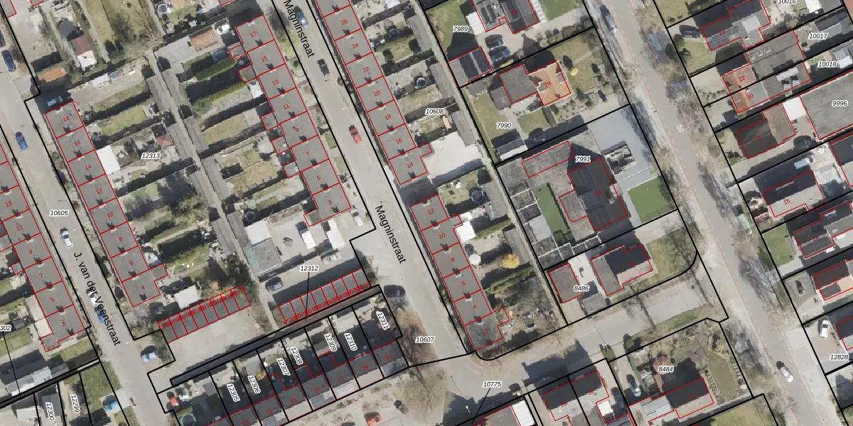 Het perceel waarop Magninstraat 12 staat heeft een oppervlakte van 3110 m². Dit is een zeer groot perceel. De perceeloppervlakte wordt geregistreerd door het Kadaster. Gedetailleerde informatie over de maten van dit perceel kunt u vinden in het rapport Kadastrale kaart met maatvoering van Magninstraat 12.