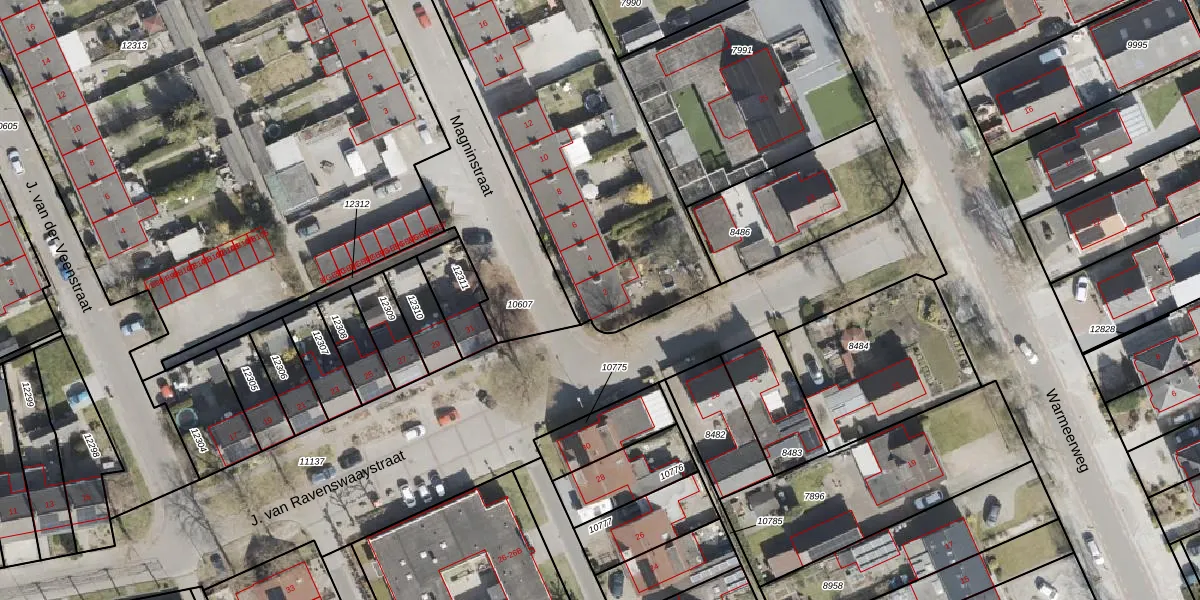 Het perceel waarop Magninstraat 2 staat heeft een oppervlakte van 3110 m². Dit is een zeer groot perceel. De perceeloppervlakte wordt geregistreerd door het Kadaster. Gedetailleerde informatie over de maten van dit perceel kunt u vinden in het rapport Kadastrale kaart met maatvoering van Magninstraat 2.