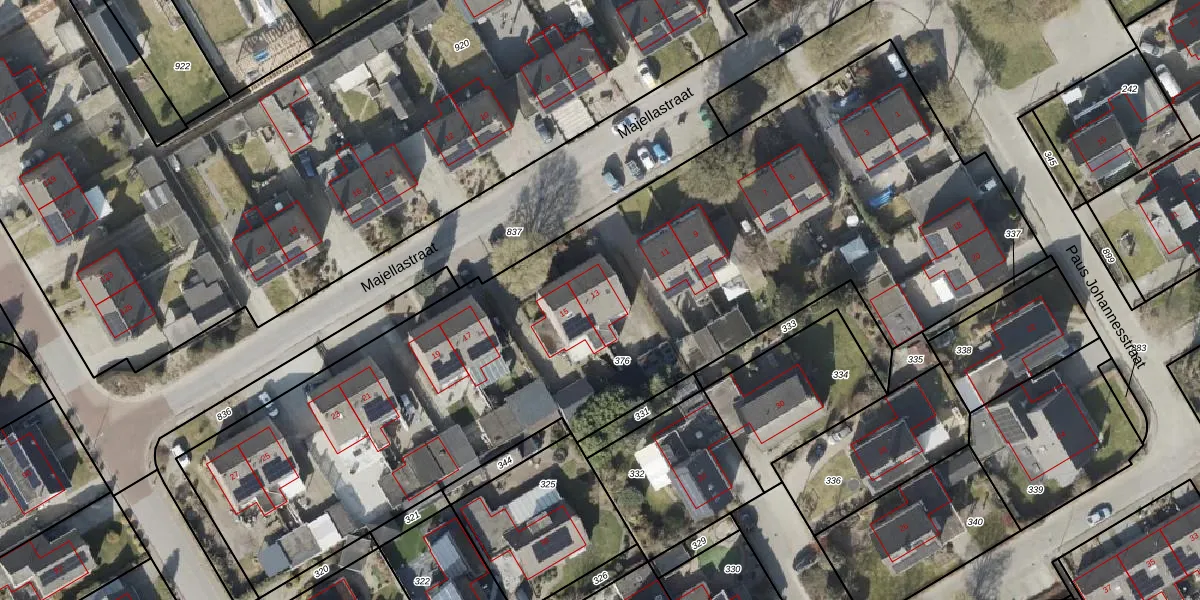 Het perceel waarop Majellastraat 13 staat heeft een oppervlakte van 4484 m². Dit is een zeer groot perceel. De perceeloppervlakte wordt geregistreerd door het Kadaster. Gedetailleerde informatie over de maten van dit perceel kunt u vinden in het rapport Kadastrale kaart met maatvoering van Majellastraat 13.