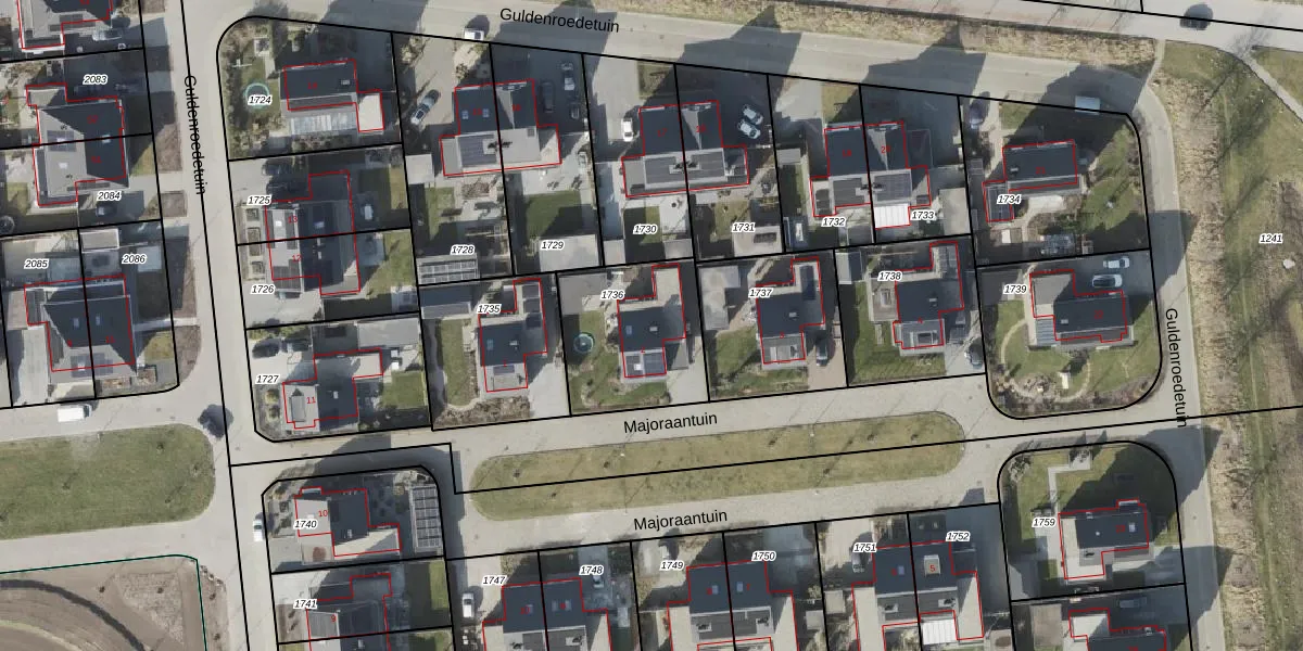 Het perceel waarop Majoraantuin 2 staat heeft een oppervlakte van 476 m². Dit is een groot perceel. De perceeloppervlakte wordt geregistreerd door het Kadaster. Gedetailleerde informatie over de maten van dit perceel kunt u vinden in het rapport Kadastrale kaart met maatvoering van Majoraantuin 2.