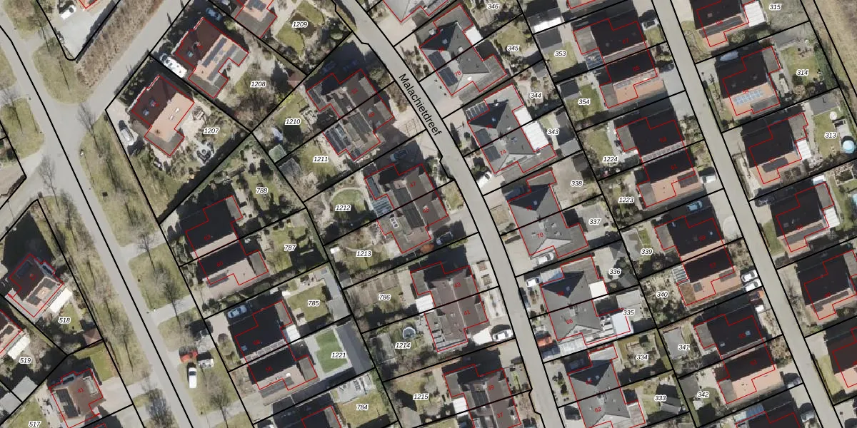 Het perceel waarop Malachietdreef 45 staat heeft een oppervlakte van 427 m². Dit is een groot perceel. De perceeloppervlakte wordt geregistreerd door het Kadaster. Gedetailleerde informatie over de maten van dit perceel kunt u vinden in het rapport Kadastrale kaart met maatvoering van Malachietdreef 45.