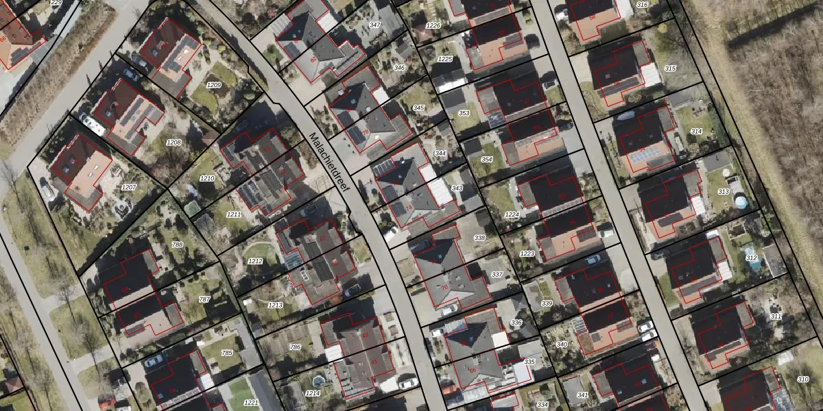 Het perceel waarop Malachietdreef 74 staat heeft een oppervlakte van 283 m². Dit is een middelgroot perceel. De perceeloppervlakte wordt geregistreerd door het Kadaster. Gedetailleerde informatie over de maten van dit perceel kunt u vinden in het rapport Kadastrale kaart met maatvoering van Malachietdreef 74.