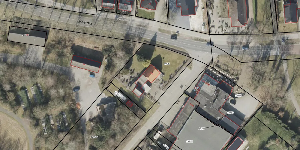 Meerdijk 102 is gelegen op kadastraal perceel EMN00F9995. Deze kadastrale aanduiding is uniek en wordt gebruikt door het Kadaster om eigendomsrechten en andere zakelijke rechten vast te leggen. Het perceel maakt onderdeel uit van de kadastrale gemeente Emmen.