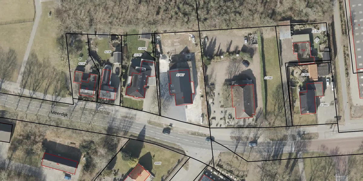 Het perceel waarop Meerdijk 67 staat heeft een oppervlakte van 1263 m². Dit is een zeer groot perceel. De perceeloppervlakte wordt geregistreerd door het Kadaster. Gedetailleerde informatie over de maten van dit perceel kunt u vinden in het rapport Kadastrale kaart met maatvoering van Meerdijk 67.