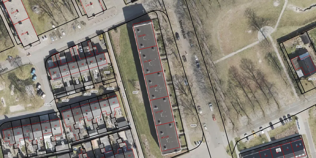 Het perceel waarop Meerstraat 131 staat heeft een oppervlakte van 2655 m². Dit is een zeer groot perceel. De perceeloppervlakte wordt geregistreerd door het Kadaster. Gedetailleerde informatie over de maten van dit perceel kunt u vinden in het rapport Kadastrale kaart met maatvoering van Meerstraat 131.