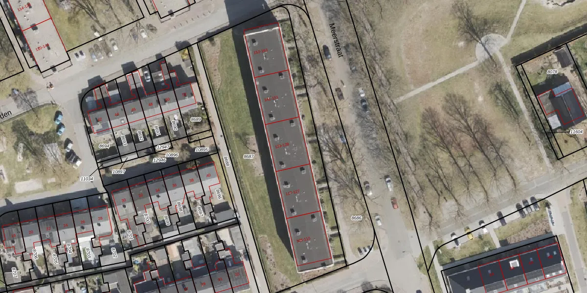 Het perceel waarop Meerstraat 135 staat heeft een oppervlakte van 2655 m². Dit is een zeer groot perceel. De perceeloppervlakte wordt geregistreerd door het Kadaster. Gedetailleerde informatie over de maten van dit perceel kunt u vinden in het rapport Kadastrale kaart met maatvoering van Meerstraat 135.