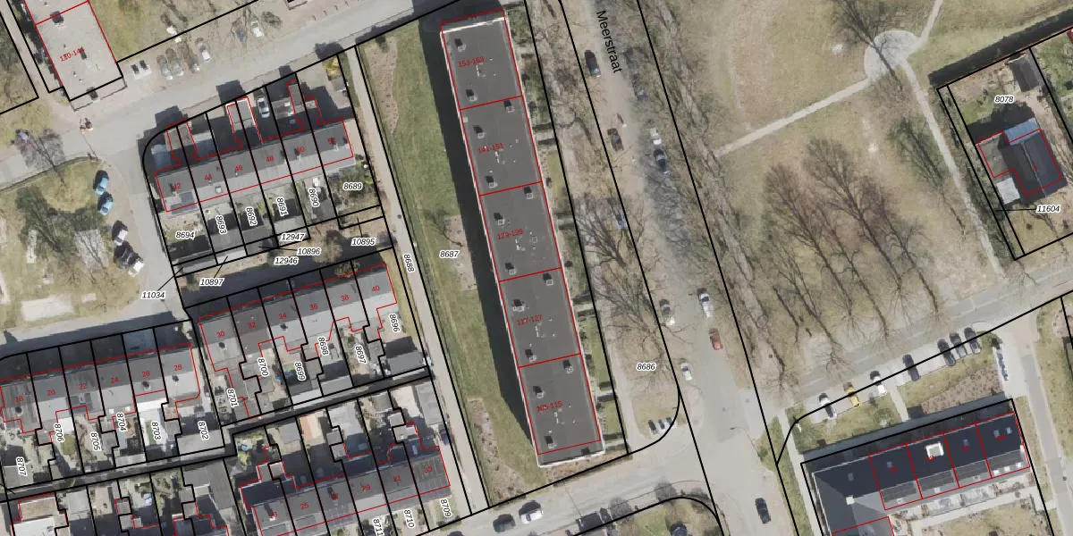 Het perceel waarop Meerstraat 139 staat heeft een oppervlakte van 2655 m². Dit is een zeer groot perceel. De perceeloppervlakte wordt geregistreerd door het Kadaster. Gedetailleerde informatie over de maten van dit perceel kunt u vinden in het rapport Kadastrale kaart met maatvoering van Meerstraat 139.