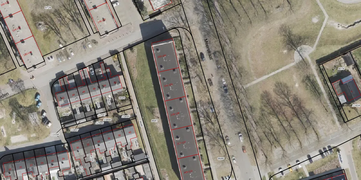 Het perceel waarop Meerstraat 141 staat heeft een oppervlakte van 2655 m². Dit is een zeer groot perceel. De perceeloppervlakte wordt geregistreerd door het Kadaster. Gedetailleerde informatie over de maten van dit perceel kunt u vinden in het rapport Kadastrale kaart met maatvoering van Meerstraat 141.
