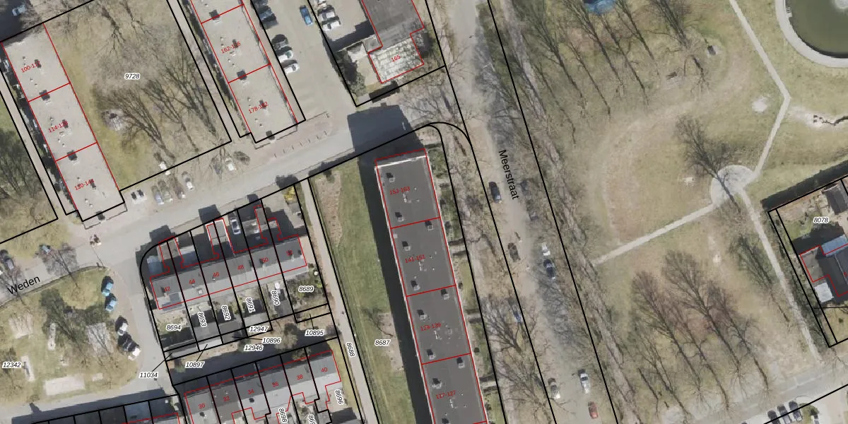Het perceel waarop Meerstraat 153 staat heeft een oppervlakte van 2655 m². Dit is een zeer groot perceel. De perceeloppervlakte wordt geregistreerd door het Kadaster. Gedetailleerde informatie over de maten van dit perceel kunt u vinden in het rapport Kadastrale kaart met maatvoering van Meerstraat 153.