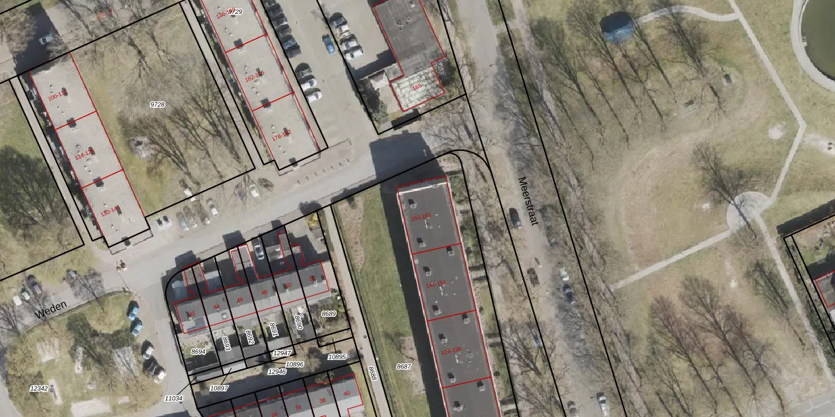 Het perceel waarop Meerstraat 161 staat heeft een oppervlakte van 2655 m². Dit is een zeer groot perceel. De perceeloppervlakte wordt geregistreerd door het Kadaster. Gedetailleerde informatie over de maten van dit perceel kunt u vinden in het rapport Kadastrale kaart met maatvoering van Meerstraat 161.