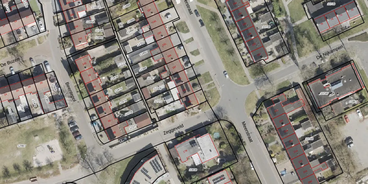 Gebruik de zoekbalk of klik op een perceel voor informatie over de adressen binnen dit perceel.