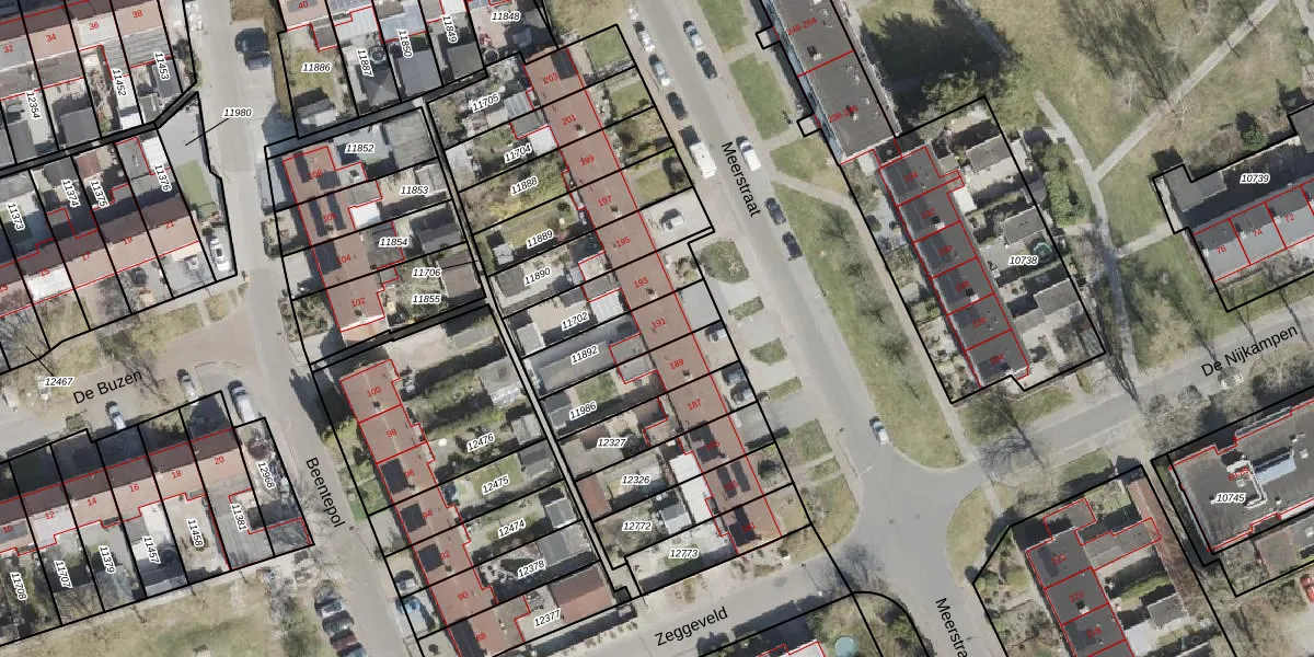 Gebruik de zoekbalk of klik op een perceel voor informatie over de adressen binnen dit perceel.