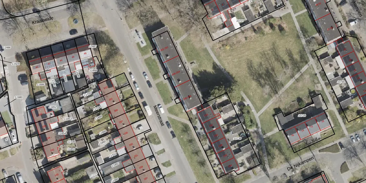 Het perceel waarop Meerstraat 244 staat heeft een oppervlakte van 1477 m². Dit is een zeer groot perceel. De perceeloppervlakte wordt geregistreerd door het Kadaster. Gedetailleerde informatie over de maten van dit perceel kunt u vinden in het rapport Kadastrale kaart met maatvoering van Meerstraat 244.