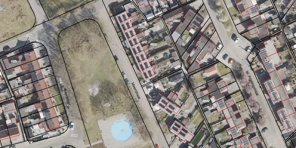 Het perceel waarop Meerstraat 296 staat heeft een oppervlakte van 1470 m². Dit is een zeer groot perceel. De perceeloppervlakte wordt geregistreerd door het Kadaster. Gedetailleerde informatie over de maten van dit perceel kunt u vinden in het rapport Kadastrale kaart met maatvoering van Meerstraat 296.