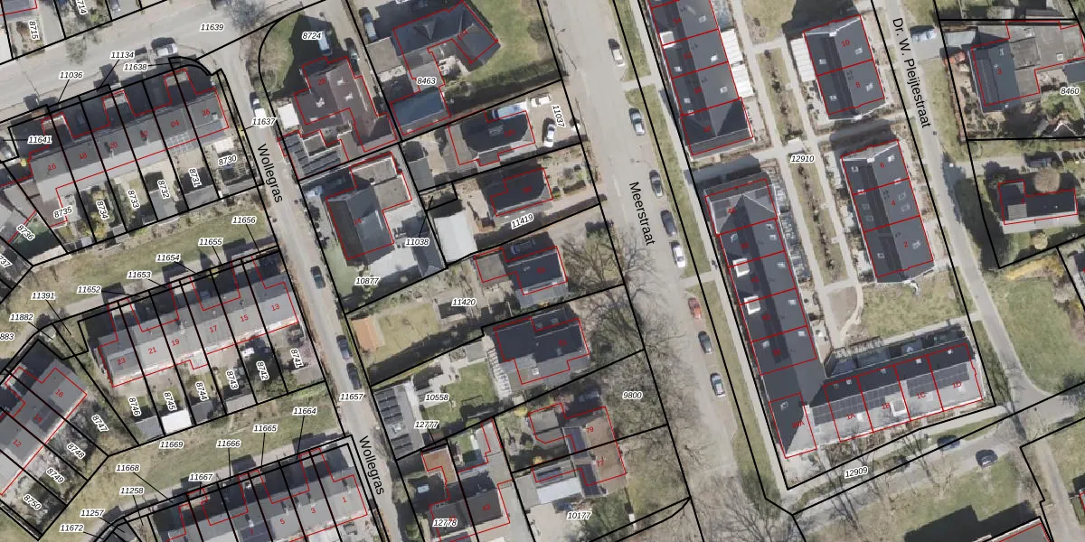 Gebruik de zoekbalk of klik op een perceel voor informatie over de adressen binnen dit perceel.