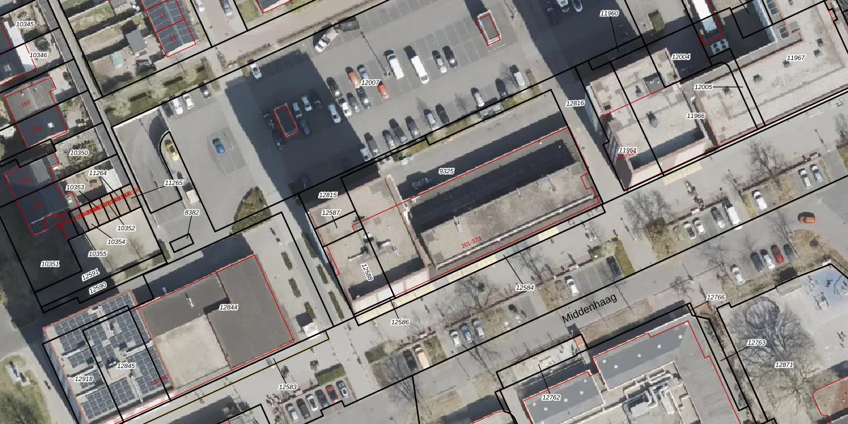 Middenhaag 213 is gelegen op kadastraal perceel EMN00C9325. Deze kadastrale aanduiding is uniek en wordt gebruikt door het Kadaster om eigendomsrechten en andere zakelijke rechten vast te leggen. Het perceel maakt onderdeel uit van de kadastrale gemeente Emmen.
