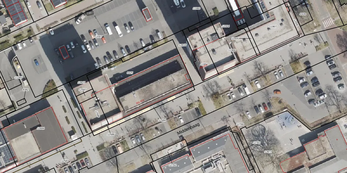 Het perceel waarop Middenhaag 361 staat heeft een oppervlakte van 1639 m². Dit is een zeer groot perceel. De perceeloppervlakte wordt geregistreerd door het Kadaster. Gedetailleerde informatie over de maten van dit perceel kunt u vinden in het rapport Kadastrale kaart met maatvoering van Middenhaag 361.