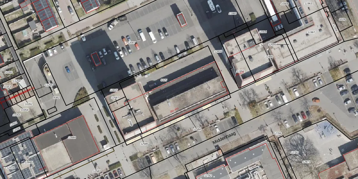 Het perceel waarop Middenhaag 365 staat heeft een oppervlakte van 1639 m². Dit is een zeer groot perceel. De perceeloppervlakte wordt geregistreerd door het Kadaster. Gedetailleerde informatie over de maten van dit perceel kunt u vinden in het rapport Kadastrale kaart met maatvoering van Middenhaag 365.