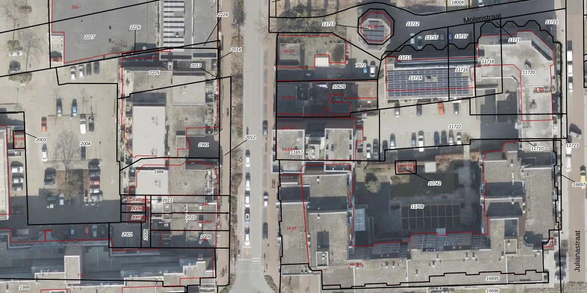 Het perceel waarop Molenstraat 103 staat heeft een oppervlakte van 549 m². Dit is een groot perceel. De perceeloppervlakte wordt geregistreerd door het Kadaster. Gedetailleerde informatie over de maten van dit perceel kunt u vinden in het rapport Kadastrale kaart met maatvoering van Molenstraat 103.