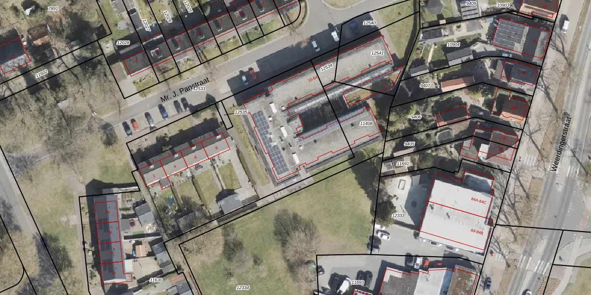 Het perceel waarop Mr. J. Panstraat 44 staat heeft een oppervlakte van 4592 m². Dit is een zeer groot perceel. De perceeloppervlakte wordt geregistreerd door het Kadaster. Gedetailleerde informatie over de maten van dit perceel kunt u vinden in het rapport Kadastrale kaart met maatvoering van Mr. J. Panstraat 44.