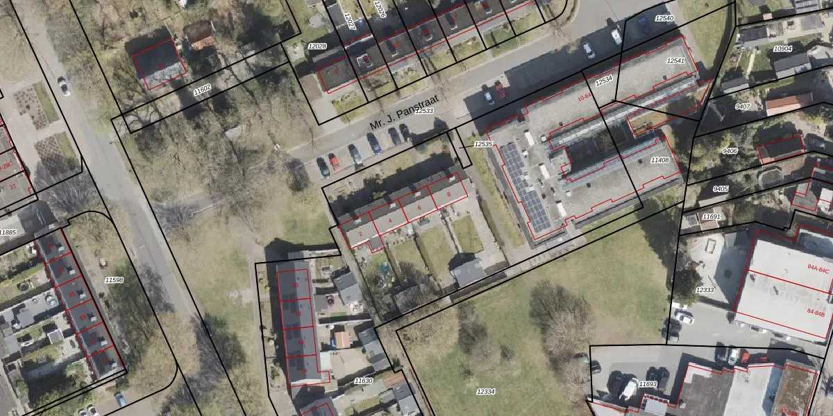 Het perceel waarop Mr. J. Panstraat 6 staat heeft een oppervlakte van 4592 m². Dit is een zeer groot perceel. De perceeloppervlakte wordt geregistreerd door het Kadaster. Gedetailleerde informatie over de maten van dit perceel kunt u vinden in het rapport Kadastrale kaart met maatvoering van Mr. J. Panstraat 6.