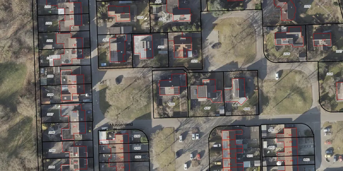 Het perceel waarop Mussenveld 122 staat heeft een oppervlakte van 562 m². Dit is een groot perceel. De perceeloppervlakte wordt geregistreerd door het Kadaster. Gedetailleerde informatie over de maten van dit perceel kunt u vinden in het rapport Kadastrale kaart met maatvoering van Mussenveld 122.