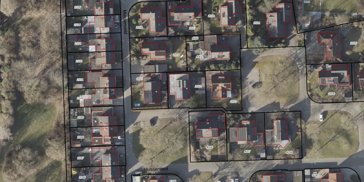 Het perceel waarop Mussenveld 123 staat heeft een oppervlakte van 421 m². Dit is een groot perceel. De perceeloppervlakte wordt geregistreerd door het Kadaster. Gedetailleerde informatie over de maten van dit perceel kunt u vinden in het rapport Kadastrale kaart met maatvoering van Mussenveld 123.