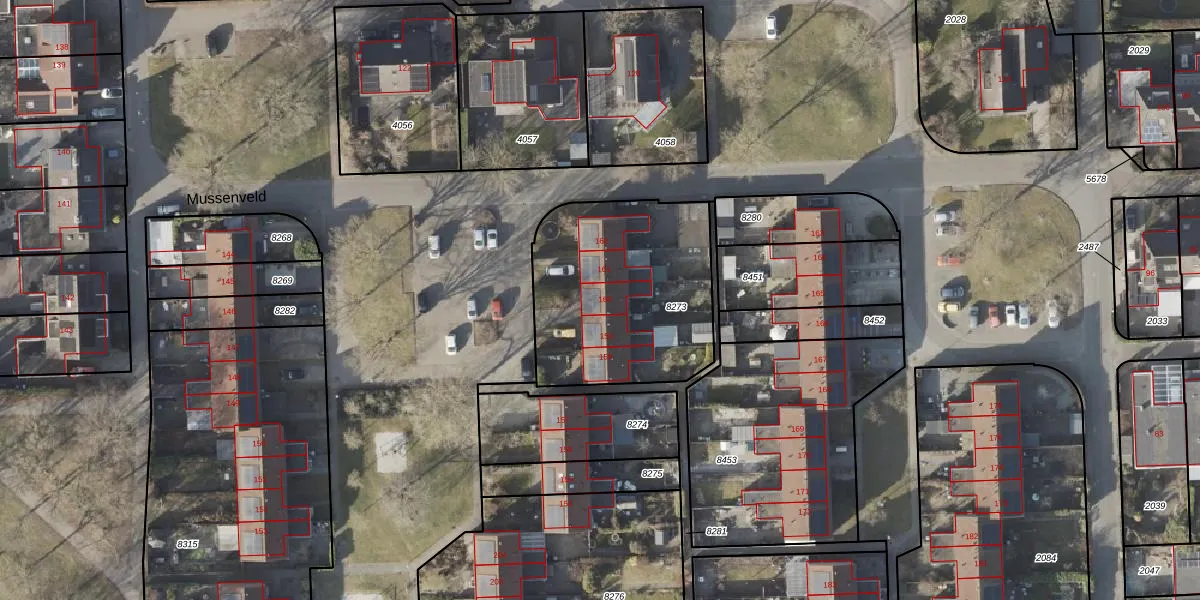 Het perceel waarop Mussenveld 160 staat heeft een oppervlakte van 880 m². Dit is een groot perceel. De perceeloppervlakte wordt geregistreerd door het Kadaster. Gedetailleerde informatie over de maten van dit perceel kunt u vinden in het rapport Kadastrale kaart met maatvoering van Mussenveld 160.