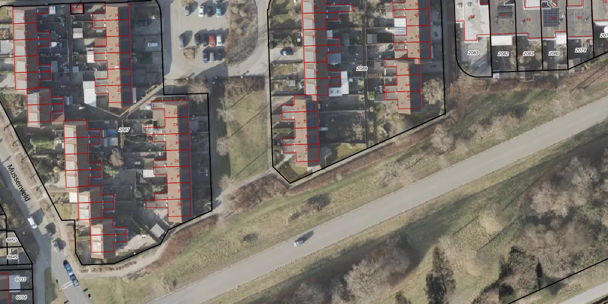 Het perceel waarop Mussenveld 29 staat heeft een oppervlakte van 3136 m². Dit is een zeer groot perceel. De perceeloppervlakte wordt geregistreerd door het Kadaster. Gedetailleerde informatie over de maten van dit perceel kunt u vinden in het rapport Kadastrale kaart met maatvoering van Mussenveld 29.