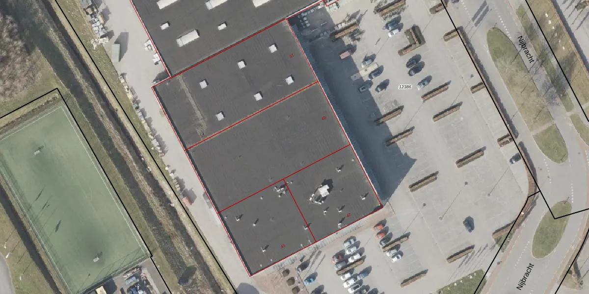Het perceel waarop Nijbracht 49 staat heeft een oppervlakte van 1,8 ha. Dit is een zeer groot perceel. De perceeloppervlakte wordt geregistreerd door het Kadaster. Gedetailleerde informatie over de maten van dit perceel kunt u vinden in het rapport Kadastrale kaart met maatvoering van Nijbracht 49.