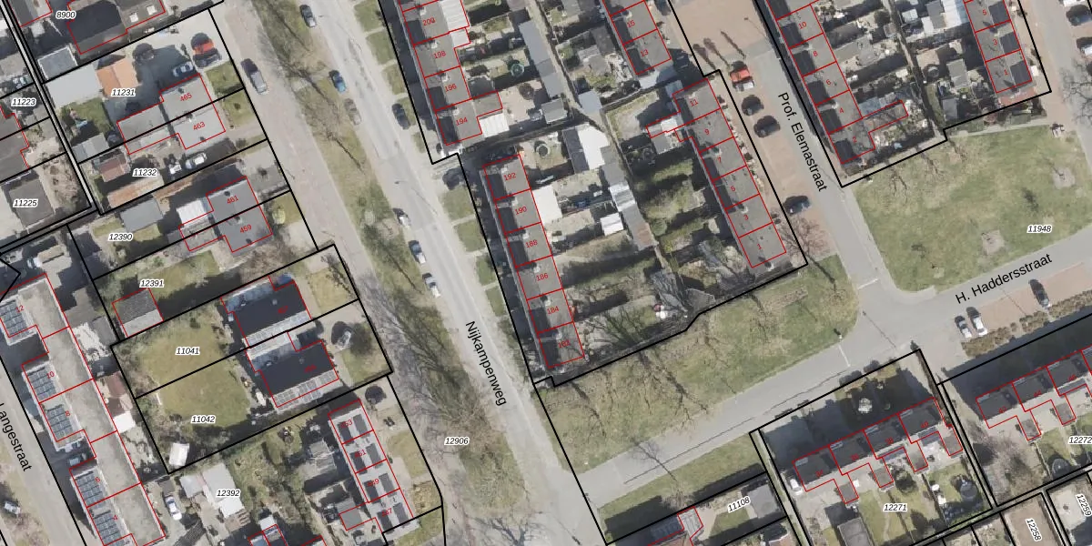 Het perceel waarop Nijkampenweg 186 staat heeft een oppervlakte van 8720 m². Dit is een zeer groot perceel. De perceeloppervlakte wordt geregistreerd door het Kadaster. Gedetailleerde informatie over de maten van dit perceel kunt u vinden in het rapport Kadastrale kaart met maatvoering van Nijkampenweg 186.