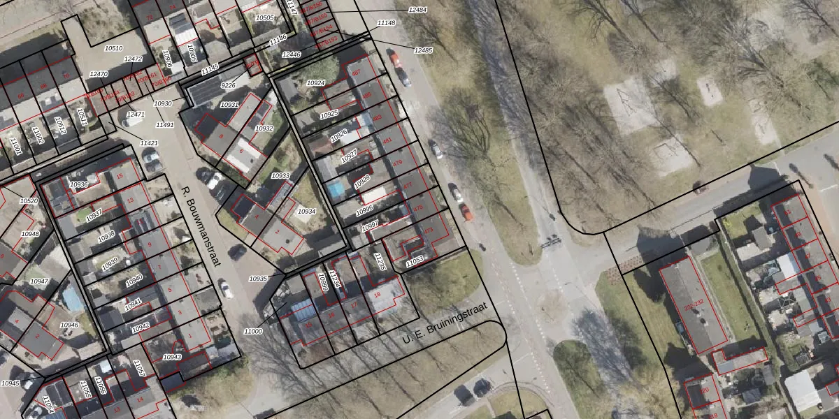 Gebruik de zoekbalk of klik op een perceel voor informatie over de adressen binnen dit perceel.