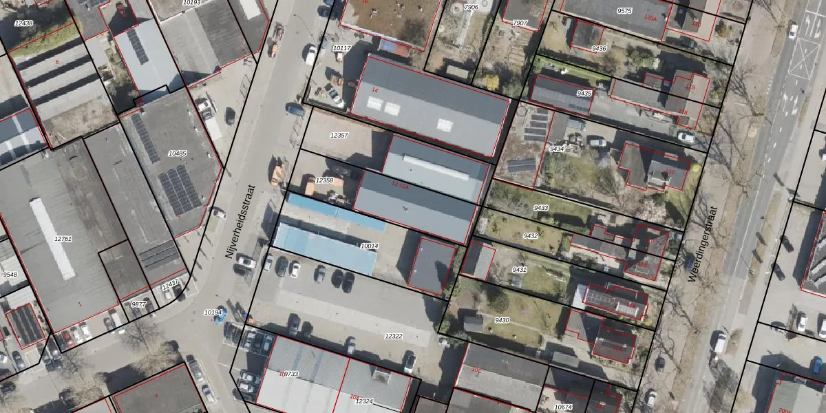 Het perceel waarop Nijverheidsstraat 12-A staat heeft een oppervlakte van 490 m². Dit is een groot perceel. De perceeloppervlakte wordt geregistreerd door het Kadaster. Gedetailleerde informatie over de maten van dit perceel kunt u vinden in het rapport Kadastrale kaart met maatvoering van Nijverheidsstraat 12-A.