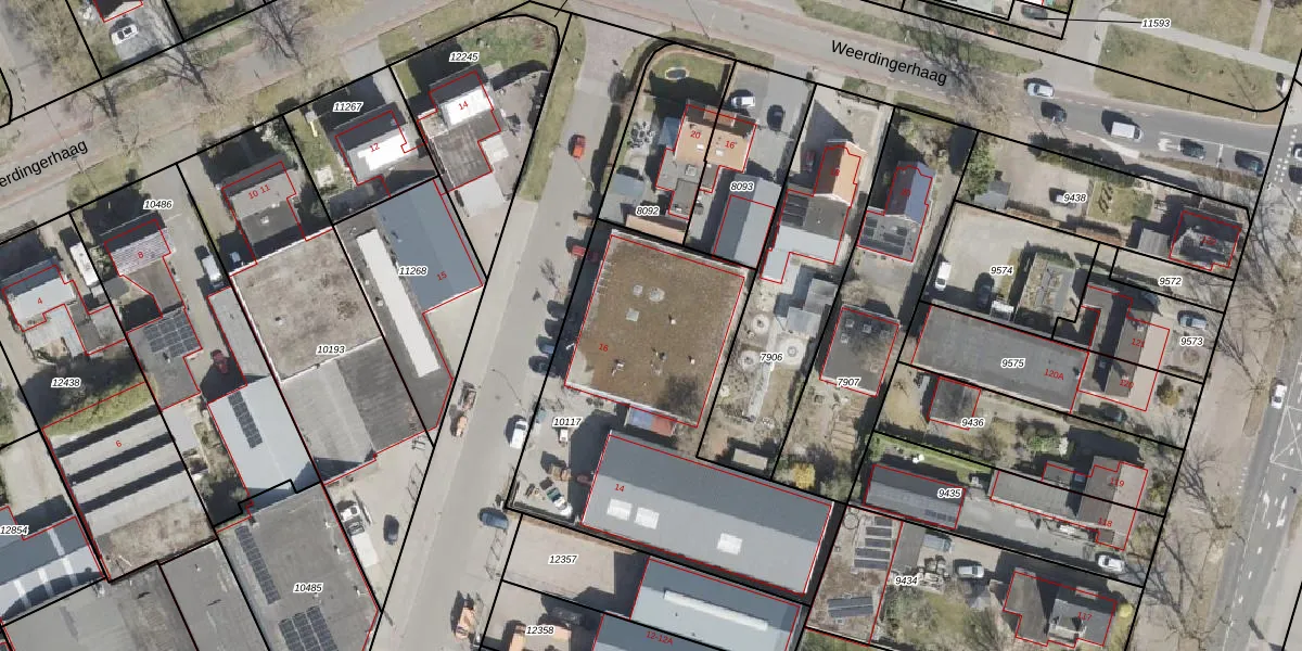 Het perceel waarop Nijverheidsstraat 16 staat heeft een oppervlakte van 1594 m². Dit is een zeer groot perceel. De perceeloppervlakte wordt geregistreerd door het Kadaster. Gedetailleerde informatie over de maten van dit perceel kunt u vinden in het rapport Kadastrale kaart met maatvoering van Nijverheidsstraat 16.
