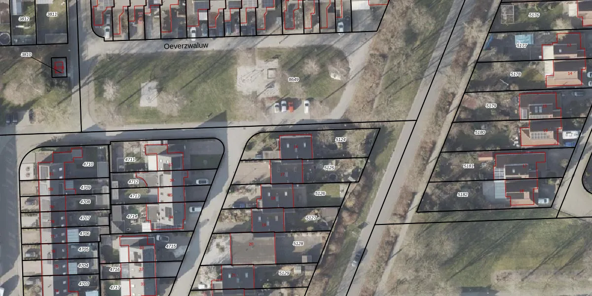 Oeverzwaluw 16 is gelegen op kadastraal perceel EMN00W5124. Deze kadastrale aanduiding is uniek en wordt gebruikt door het Kadaster om eigendomsrechten en andere zakelijke rechten vast te leggen. Het perceel maakt onderdeel uit van de kadastrale gemeente Emmen.