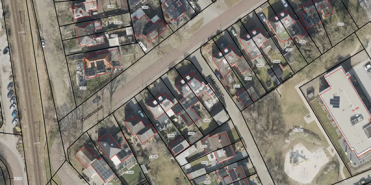 Het perceel waarop Oosterstraat 12 staat heeft een oppervlakte van 390 m². Dit is een groot perceel. De perceeloppervlakte wordt geregistreerd door het Kadaster. Gedetailleerde informatie over de maten van dit perceel kunt u vinden in het rapport Kadastrale kaart met maatvoering van Oosterstraat 12.