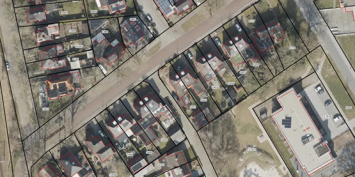 Gebruik de zoekbalk of klik op een perceel voor informatie over de adressen binnen dit perceel.