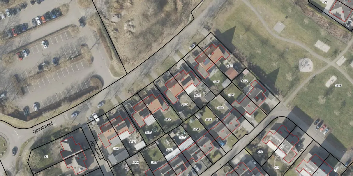 Het perceel waarop Opaaldreef 10 staat heeft een oppervlakte van 326 m². Dit is een groot perceel. De perceeloppervlakte wordt geregistreerd door het Kadaster. Gedetailleerde informatie over de maten van dit perceel kunt u vinden in het rapport Kadastrale kaart met maatvoering van Opaaldreef 10.