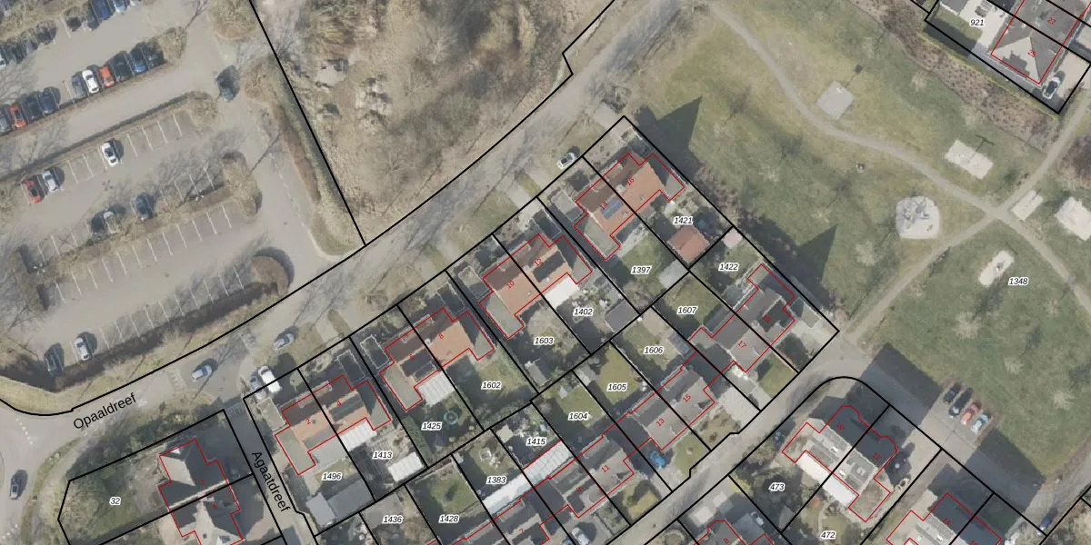 Gebruik de zoekbalk of klik op een perceel voor informatie over de adressen binnen dit perceel.
