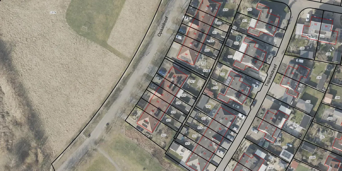 Het perceel waarop Opaaldreef 30 staat heeft een oppervlakte van 158 m². Dit is een middelgroot perceel. De perceeloppervlakte wordt geregistreerd door het Kadaster. Gedetailleerde informatie over de maten van dit perceel kunt u vinden in het rapport Kadastrale kaart met maatvoering van Opaaldreef 30.