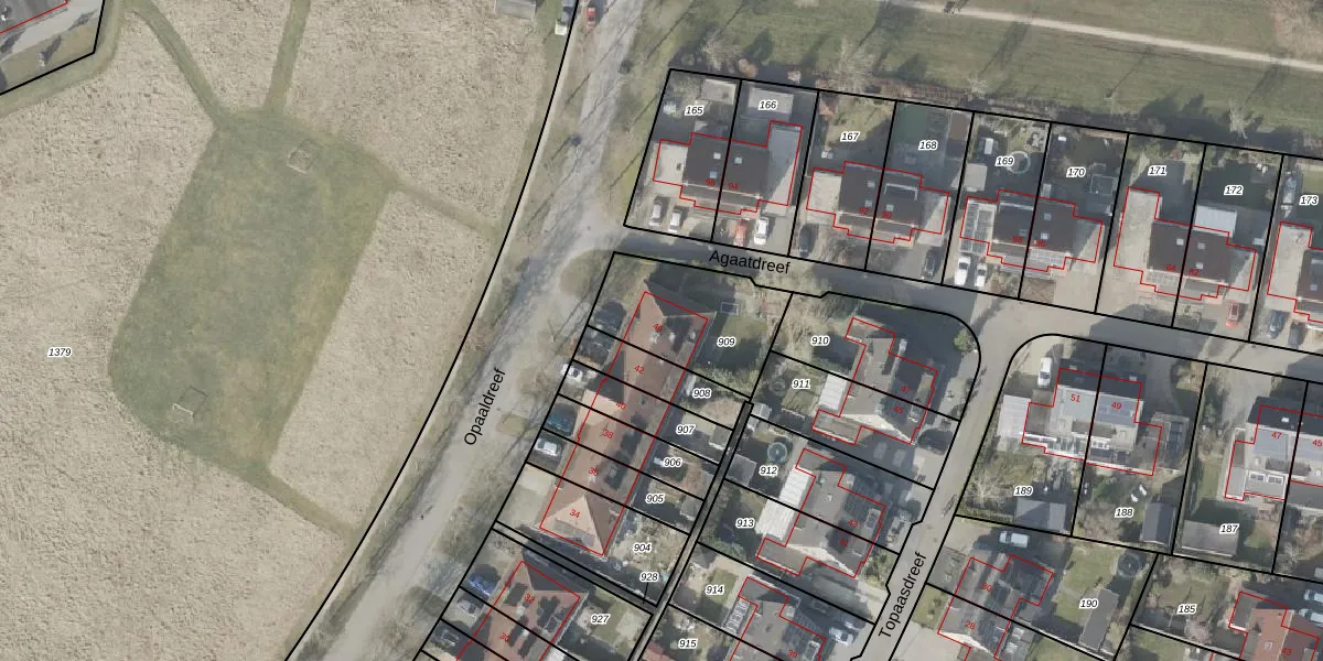 Het perceel waarop Opaaldreef 44 staat heeft een oppervlakte van 404 m². Dit is een groot perceel. De perceeloppervlakte wordt geregistreerd door het Kadaster. Gedetailleerde informatie over de maten van dit perceel kunt u vinden in het rapport Kadastrale kaart met maatvoering van Opaaldreef 44.
