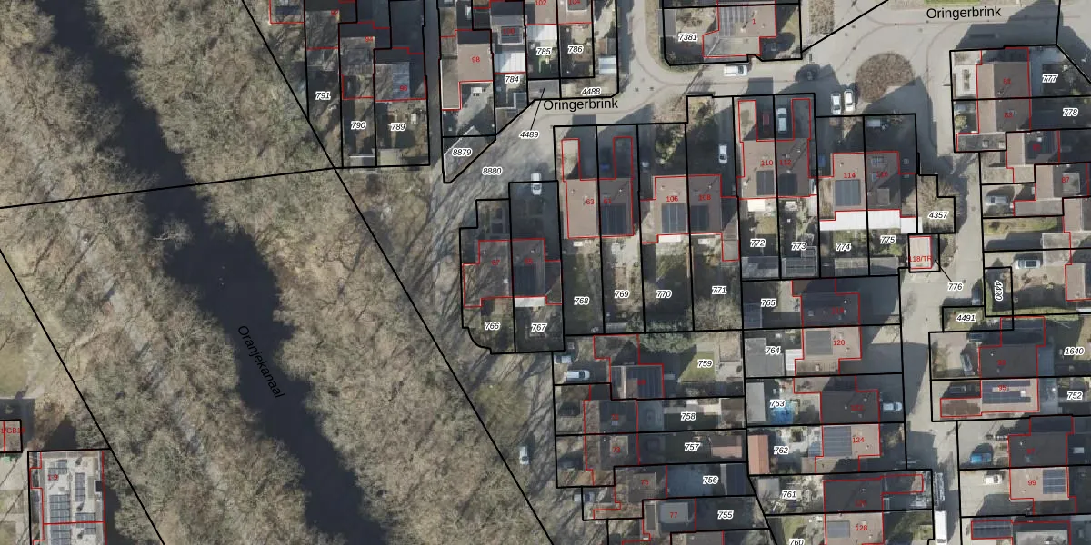 Het perceel waarop Oringerbrink 65 staat heeft een oppervlakte van 282 m². Dit is een middelgroot perceel. De perceeloppervlakte wordt geregistreerd door het Kadaster. Gedetailleerde informatie over de maten van dit perceel kunt u vinden in het rapport Kadastrale kaart met maatvoering van Oringerbrink 65.