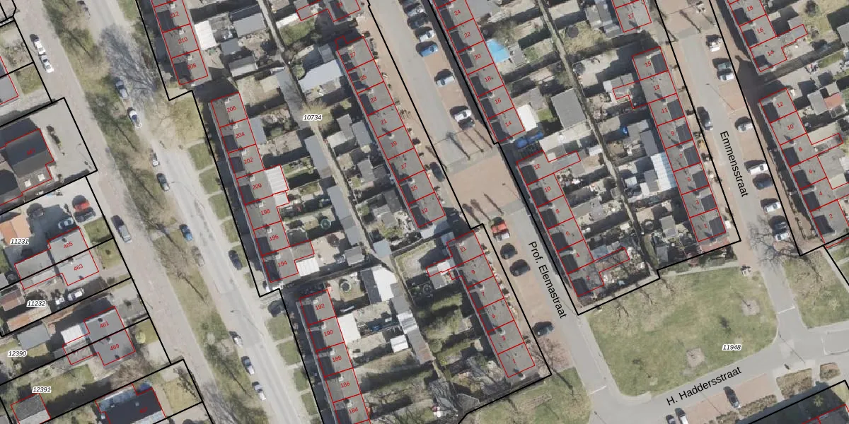 Prof. Elemastraat 13 is gelegen op kadastraal perceel EMN00C10734. Deze kadastrale aanduiding is uniek en wordt gebruikt door het Kadaster om eigendomsrechten en andere zakelijke rechten vast te leggen. Het perceel maakt onderdeel uit van de kadastrale gemeente Emmen.