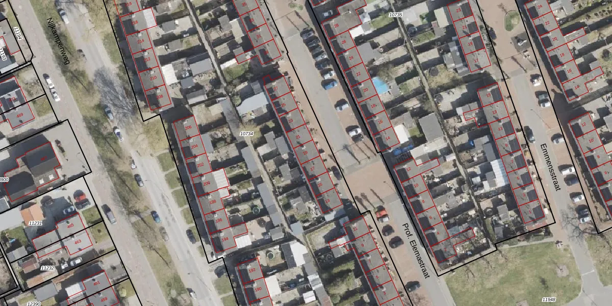 Prof. Elemastraat 19 is gelegen op kadastraal perceel EMN00C10734. Deze kadastrale aanduiding is uniek en wordt gebruikt door het Kadaster om eigendomsrechten en andere zakelijke rechten vast te leggen. Het perceel maakt onderdeel uit van de kadastrale gemeente Emmen.