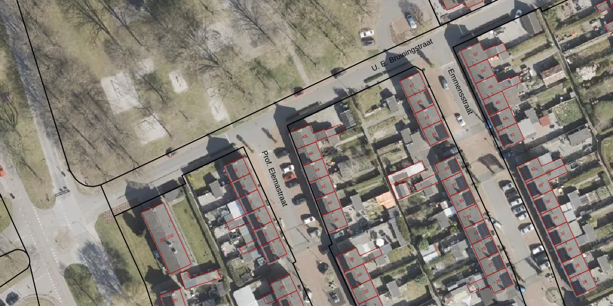 Prof. Elemastraat 46 is gelegen op kadastraal perceel EMN00C10735. Deze kadastrale aanduiding is uniek en wordt gebruikt door het Kadaster om eigendomsrechten en andere zakelijke rechten vast te leggen. Het perceel maakt onderdeel uit van de kadastrale gemeente Emmen.