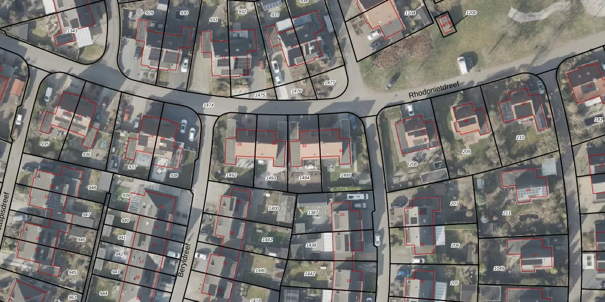 Het perceel waarop Rhodonietdreef 32 staat heeft een oppervlakte van 276 m². Dit is een middelgroot perceel. De perceeloppervlakte wordt geregistreerd door het Kadaster. Gedetailleerde informatie over de maten van dit perceel kunt u vinden in het rapport Kadastrale kaart met maatvoering van Rhodonietdreef 32.