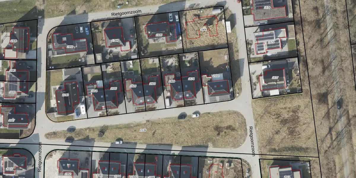 Rietgoornzoom 21 is gelegen op kadastraal perceel EMN00V1499. Deze kadastrale aanduiding is uniek en wordt gebruikt door het Kadaster om eigendomsrechten en andere zakelijke rechten vast te leggen. Het perceel maakt onderdeel uit van de kadastrale gemeente Emmen.